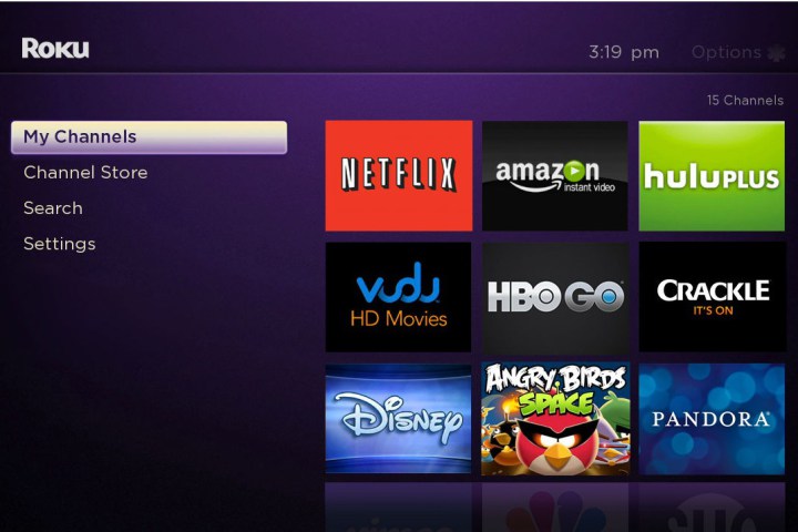 Enter the Roku 3, which is available online now and in stores next month. Replacing the current high-end version, the $99.99 Roku 2 XS, it’s not a radical departure from a hardware standpoint. The case, which is swoopier but about the same size, packs a faster processor and more robust 2×2 dual-band wifi for snappier performance and more glitch-free streaming. The wireless remote control still incorporates motion sensors for use in casual games such as Angry Birds; now it also has a headphone jack, letting you listen to TV in bed without annoying your spouse. (The box comes with earbuds in Roku’s signature purple, but you can also use your own; basically, it turns any headphones into wireless headphones.)